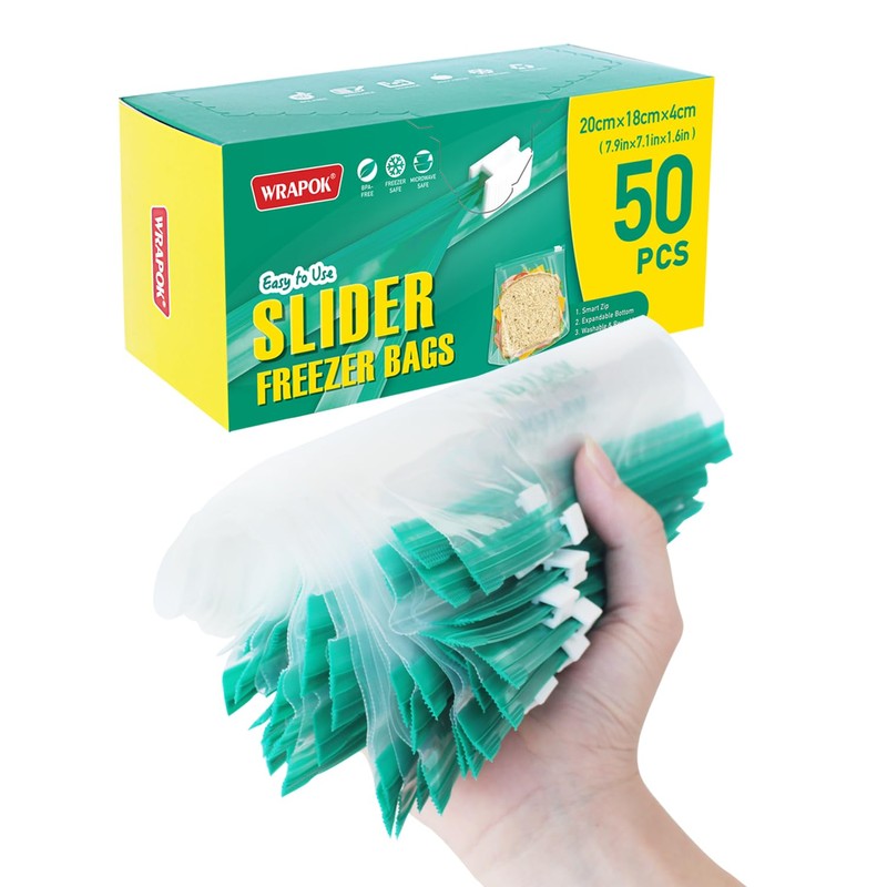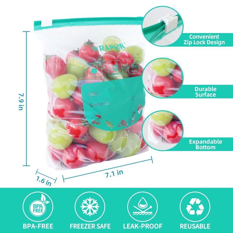WRAPOK Zip Lock Freezer Bags Large Food Bag Plastic Ziplock Storage Reusable Bag for Kitchen, 7.9 x 7.1 Inch - 50 Count
