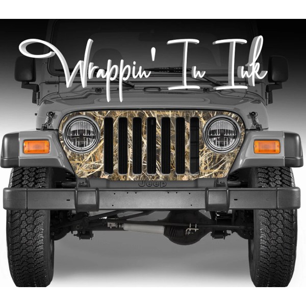Wrappin' In Ink Grill Wrap in Tall Grass Camouflage fits Jeep Wrangler 1997-2006
