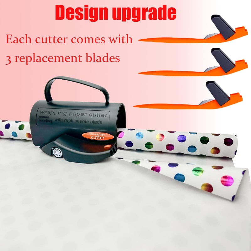 Wrapping Paper Cutter,Christmas Gift Wrapping Paper Roll Cutter with 3 Replaceable Blades for Crafting Wrapping Paper Birthdays Thanksgiving Family Gatherings,Black