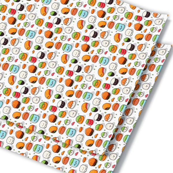 • FUN ELEMENTS FOR HAPPY GIFT MOMENTS The humorous sushi elements on the paper make unpacking a joyful experience. From sushi rolls to smiling wasabi blobs, each design tells its own amusing story.