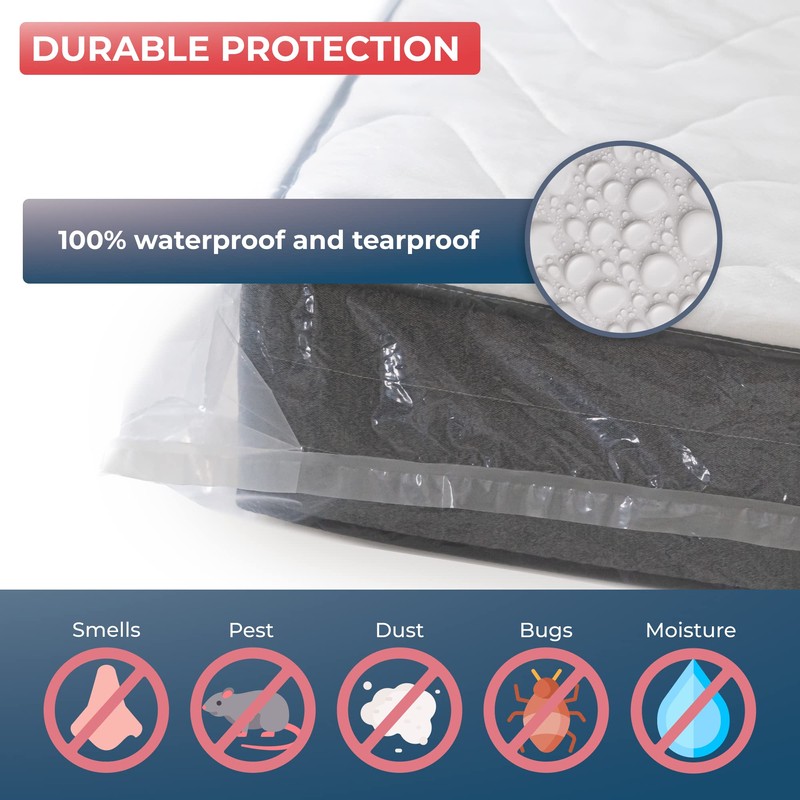 - 🛡️【 REINFORCED THICKNESS 】: Made from plastic that’s completely resistant to warping and tearing, we have used only the best materials to make our mattress case. Thicker and more resistant than classic protective cases, the Wrappybag storage bag has been designed to last for years.