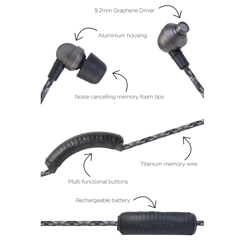 Wraps BTGO Bluetooth Headphones with Microphone - Black