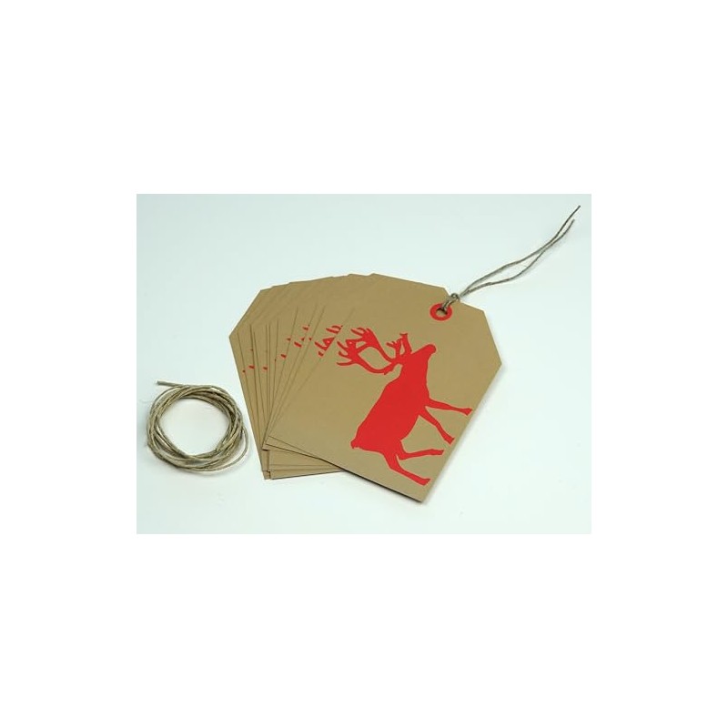 Wrapt Giant XXL Christmas Kraft Gift Tags - 12 Pack, 10x15cm - Christmas Presents Labels with String, Gift Wrapping - Recyclable - Made in UK from Sustainably Sourced Materials (Reindeer)