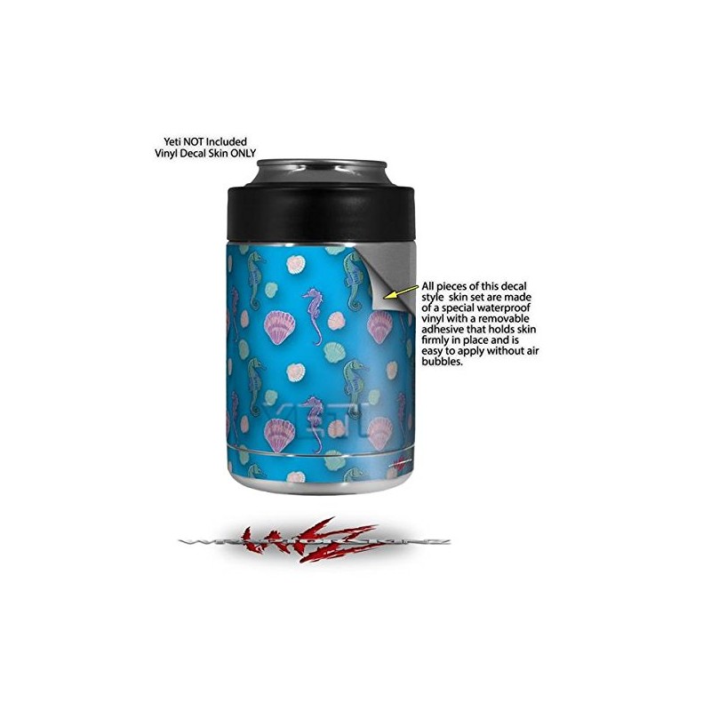 WraptorSkinz Skin Decal Wrap for Yeti Colster and RTIC Can Coolers Seahorses and Shells Blue Medium (COOLER NOT INCLUDED)