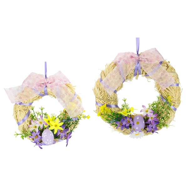 - PERFECT DECORATION This is a complete, concise and beautiful front door wreath. This artificial flower wreath with artificial flowers and egg will brighten up your entrance, making your entrance area equally inviting and adding Easter flair. Hang on the front door, living room, fireplace, cabinets, wall, window, shelf and other places.