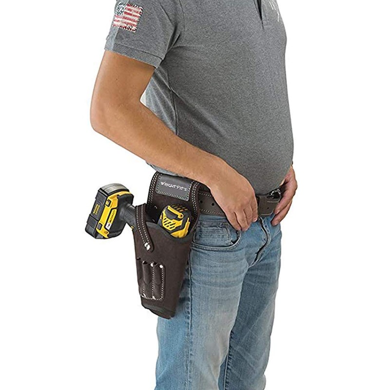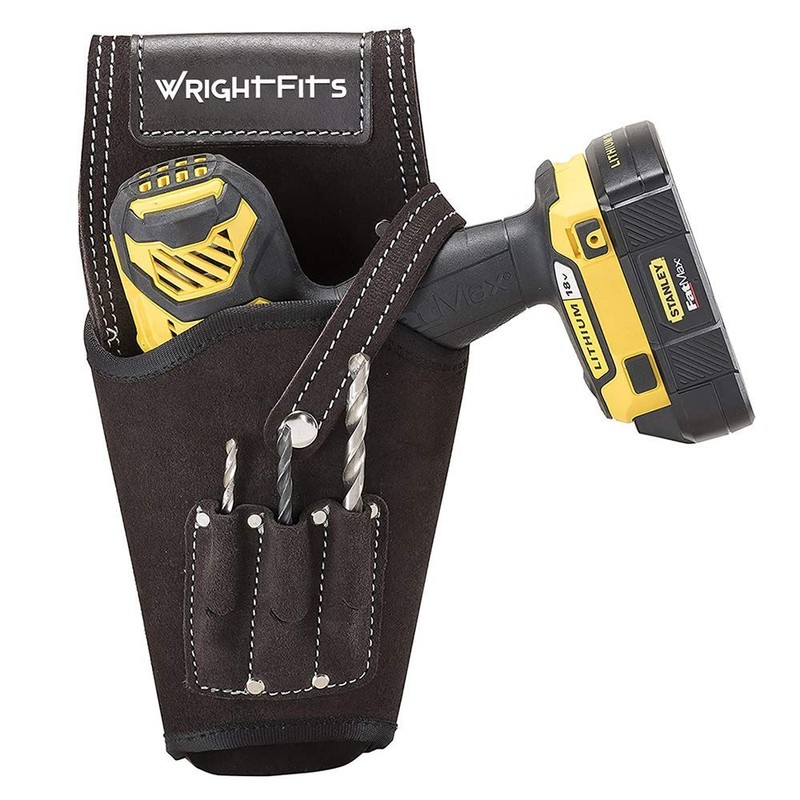 - WrightFits Drill Holster is angled for better balance, quick access to cordless drill holster. Plus, it also features multiple pockets to organize your accessories and has a safety strap.