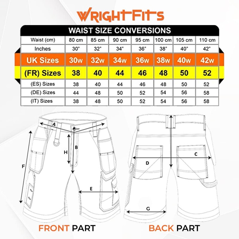 WrightFits Men Holster Work Shorts - Heavy Duty Safety Combat Cargo Summer Shorts - Multi Pockets - Triple Stitched - Durable Workwear Khaki 38 W