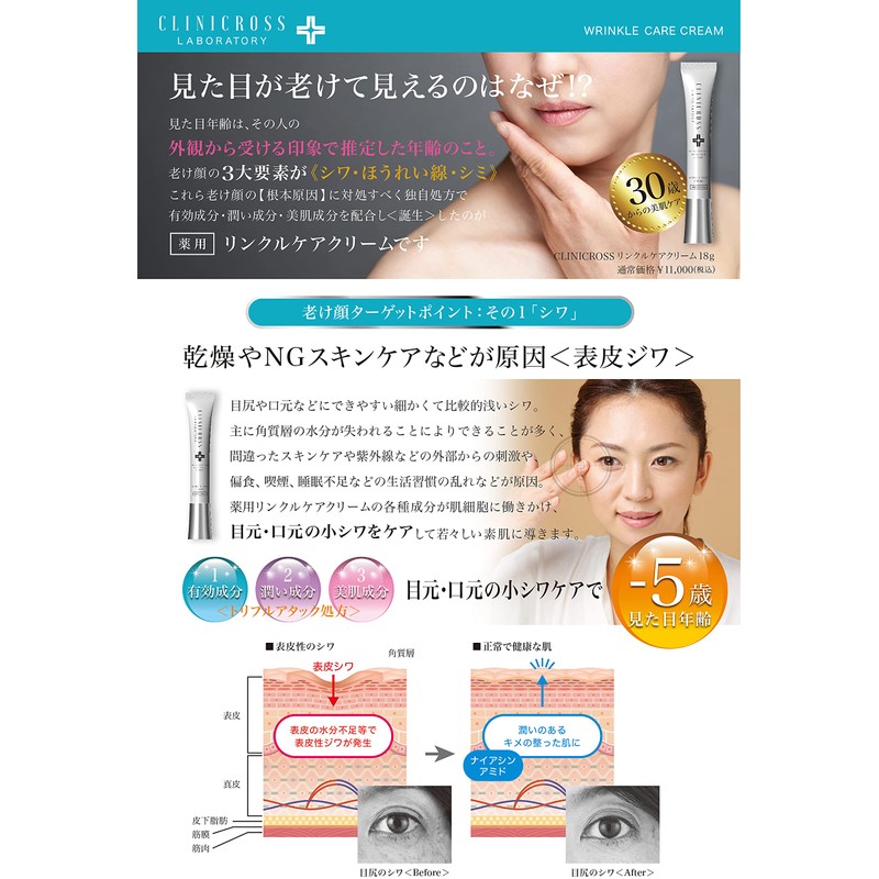 • The triple attack formula of active ingredients, moisturizing ingredients, and beautiful skin ingredients work on the skin, and care for small wrinkles in the eyes and mouth