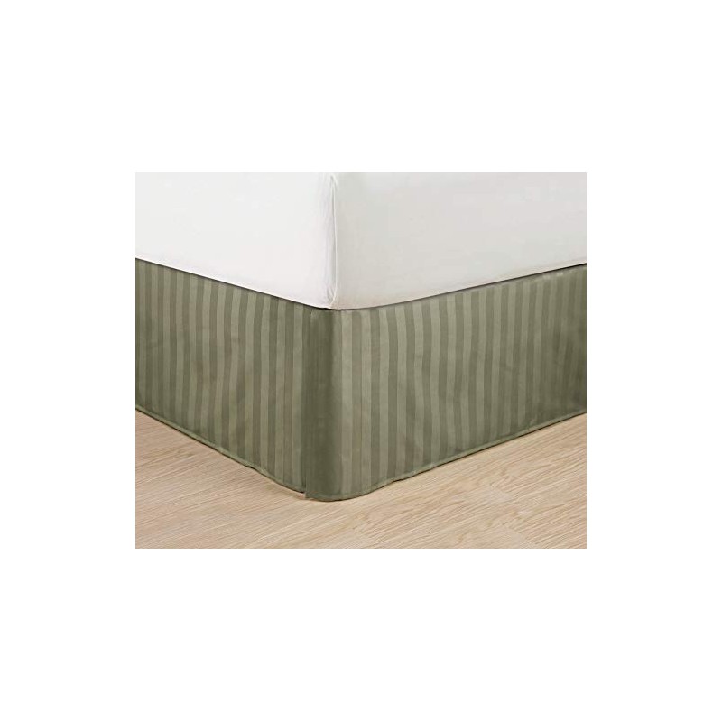 Wrinkle Free - Egyptian Quality Stripe Bed Skirt - Pleated Tailored 14" Drop and Colors, Queen, Green