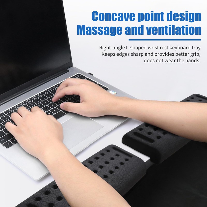 - L-shaped design: The unique L-shaped design surrounds the sharp edges of the table and is different from conventional keyboard wrist rests on the market. This completely solves arm pain on the edge of the table