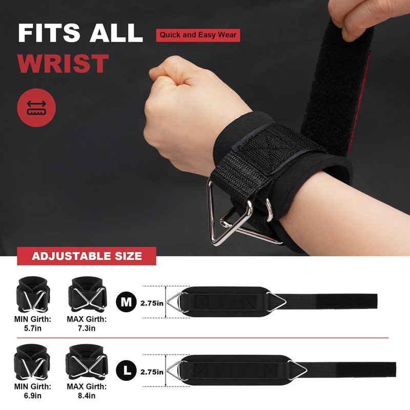 - PINCH-FREE COMFORT DESIGN: Our wrist straps features a thoughtful layout where the stainless steel triangle rings and adjustment system are positioned on the same side. This ensures the thick neoprene padding fully wraps around your wrist during pulls, and providing consistent, comfortable support without gaps. Focus on your workout, not discomfort!