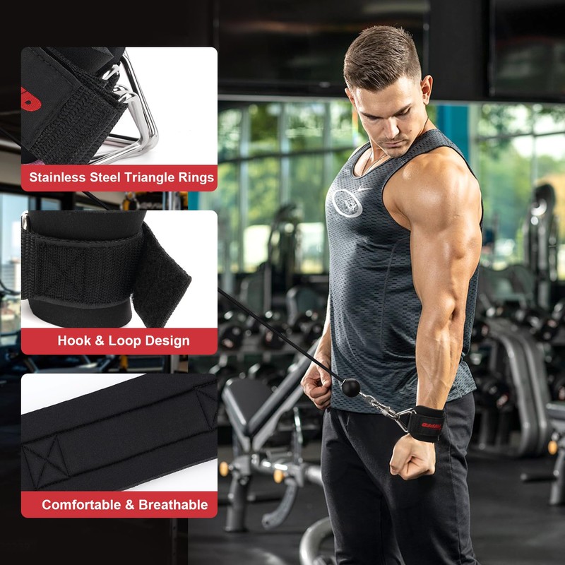 Wrist Straps for Cable Machines, Adjustable Neoprene Padded Wrist Cuffs for Cables Gym Strength Training Equipment