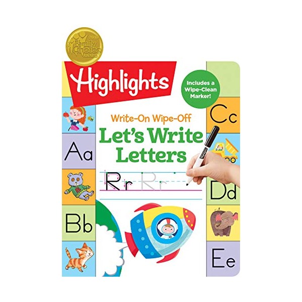 Letter recognition is an important step toward getting ready to read, and Highlights infuses Fun with a Purpose(TM) into this ordinarily rote activity. With vibrant art and fun puzzles, Write-On Wipe-Off Let's Write Letters takes kids on an alphabet adventure. A variety of activities, including searches and mazes, will engage and entertain kids and build their confidence as they practice essential writing skills. Kids love that they can draw all over these books, and parents love that the write-on wipe-off format lets kids trace over and over again and again.