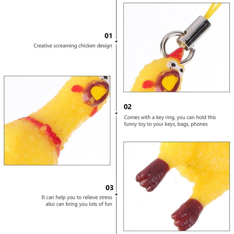 WRITWAA 5Pcs Screaming Chicken Keychain, Mini Funny Yellow Squeaking Chicken Pendant Plastic Squeeze Squawking Chicken for Keys Bags Phones