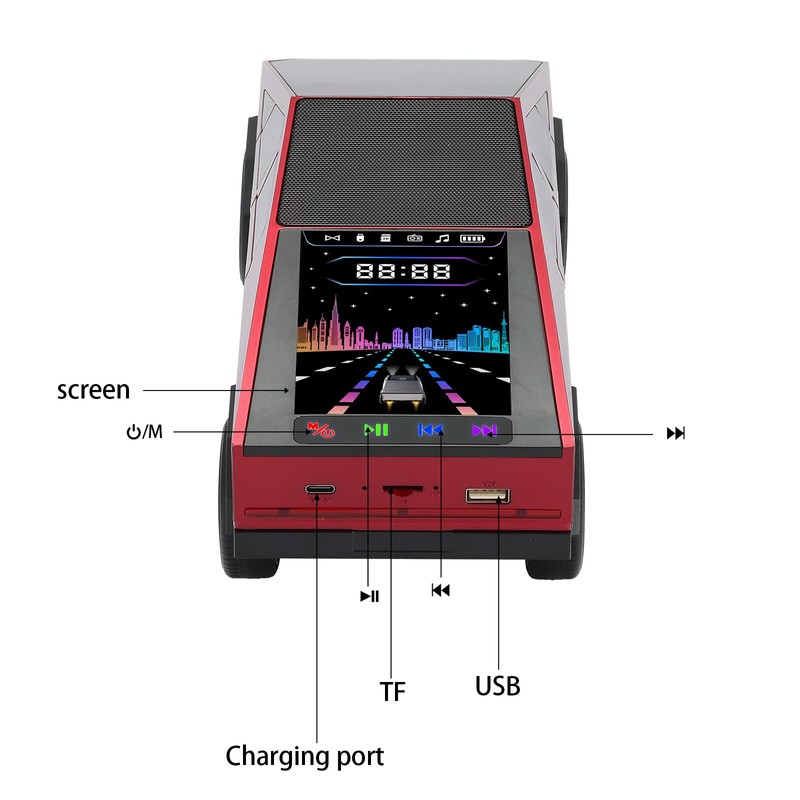 - 🚀 Futuristic Truck Design + Display Screen Inspired by modern electric trucks, this eye-catching speaker features a dynamic display that enhances both looks and usability.