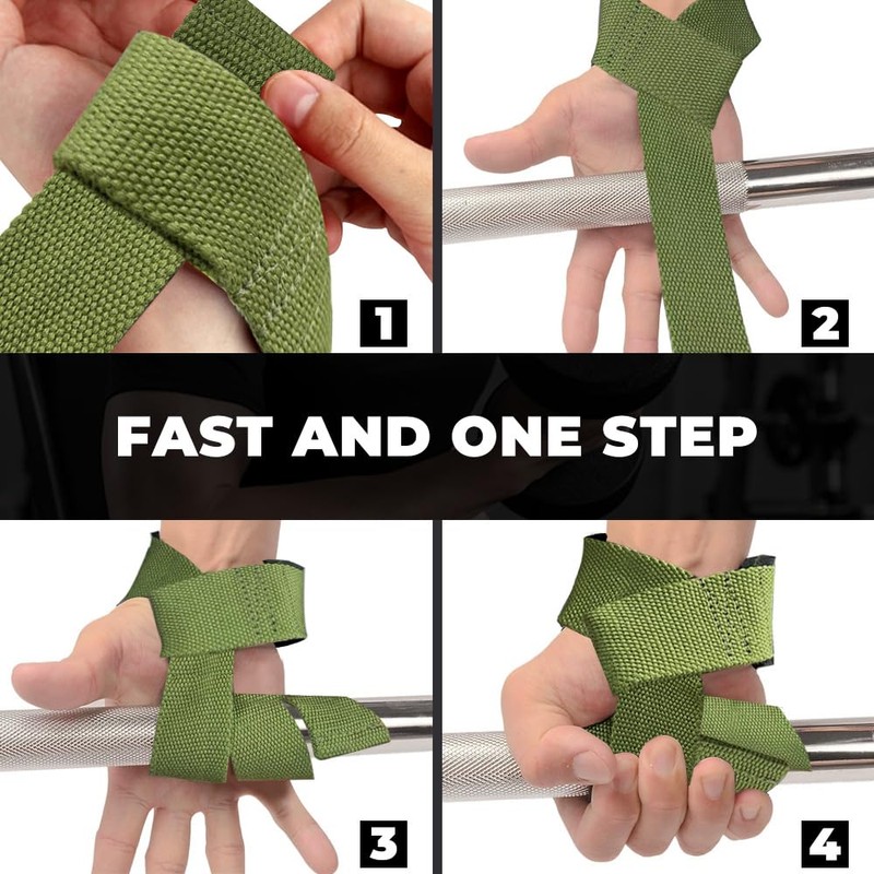 WSAKOUE Lifting Straps, Weightlifting Straps, Deadlift Straps with Padded Neoprene for Power Lifting, Bodybuilding, Gym Workout, Strength Training & Fitness Workout, Resistance - Army Green