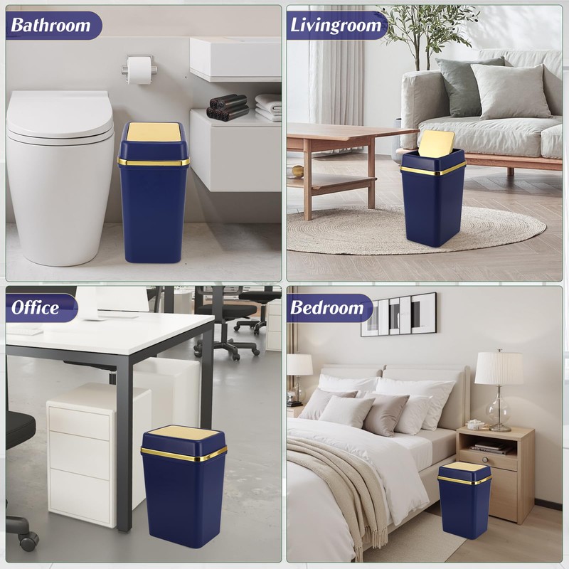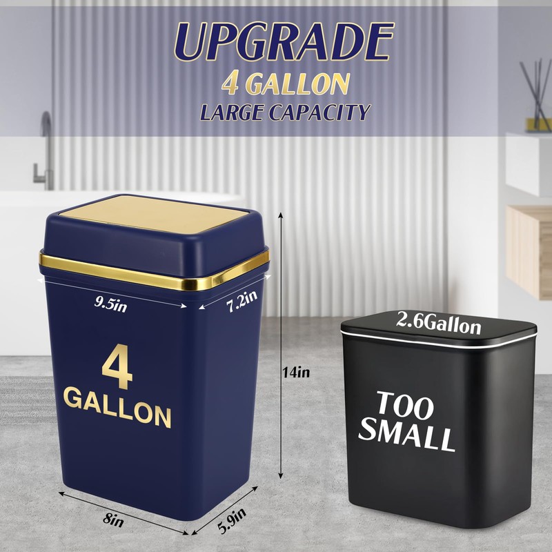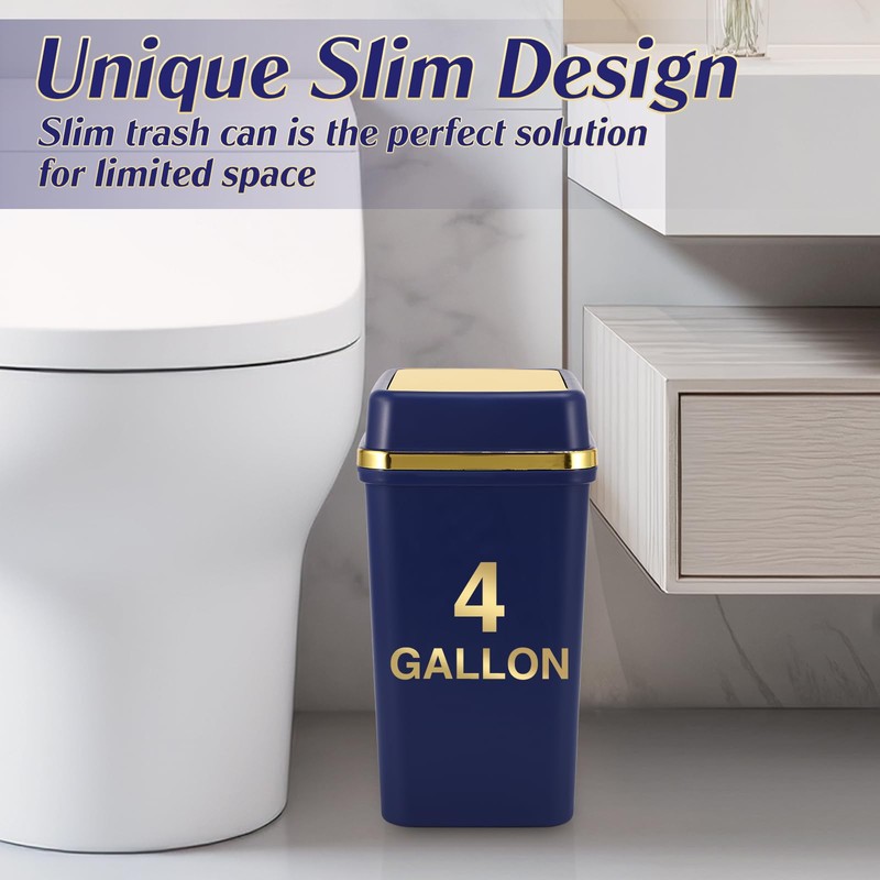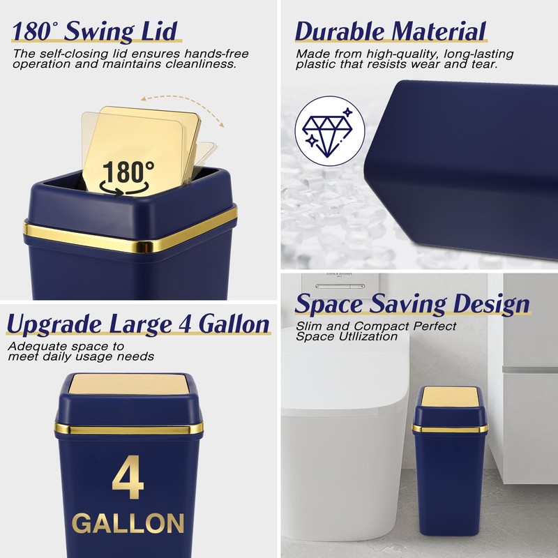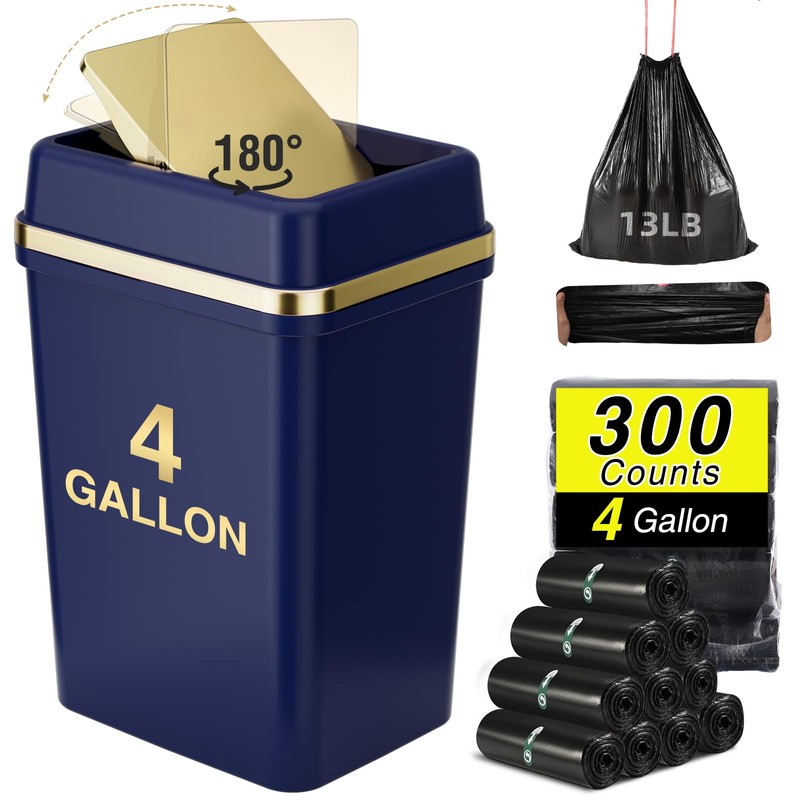 WSBArt Bathroom Trash Can with Lid 4 Gallon Trash Can with Swing Lid Navy Blue Small Garbage Can Bathroom Garbage Can with 300 Counts Trash Bags for Kitchen Bedroom Office