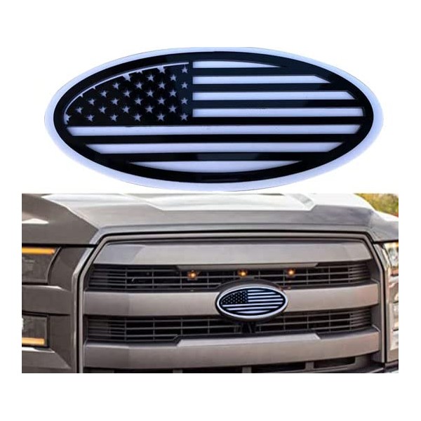 WSHFJDVCM 1pc USA Flag Emblem Badge Nameplate for Ford 04-14 F150, 11-14 Edge, 11-16 Explorer, 06-11 Ranger, 07-14 Expedition, Black/White,9inch F-9USF-BW