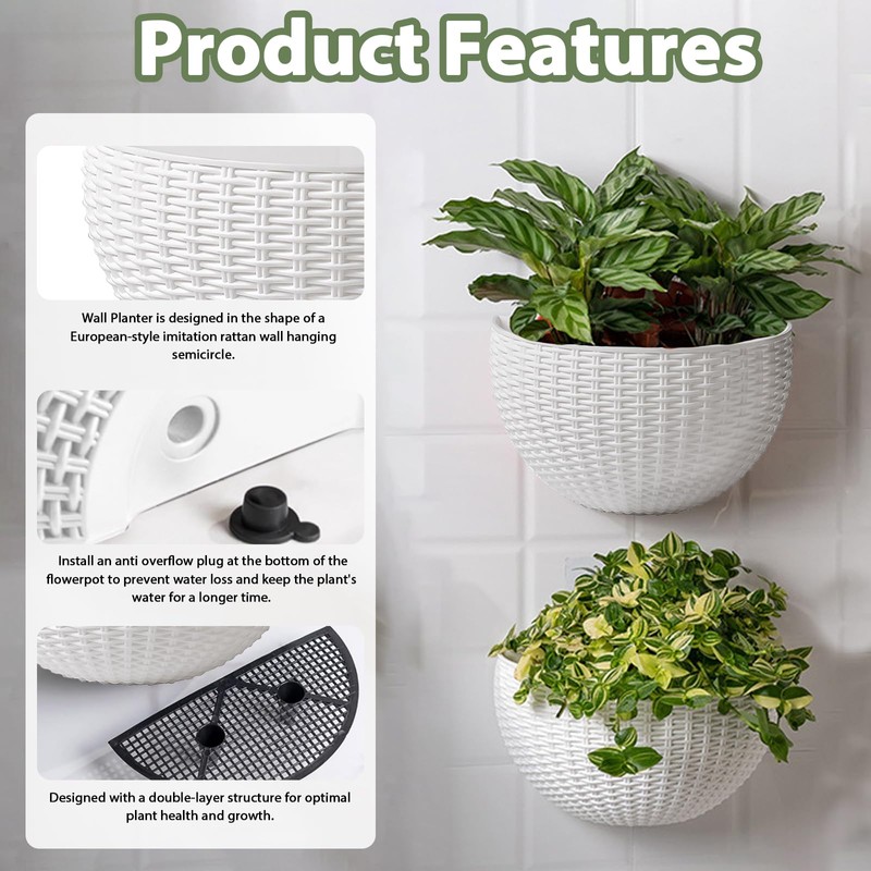- Creative & Functional Design: These rattan-style semicircular wall-mounted planters are crafted from premium PP resin—sturdy and breathable Great for showing off succulents, vines, or cacti while creating a refreshing look