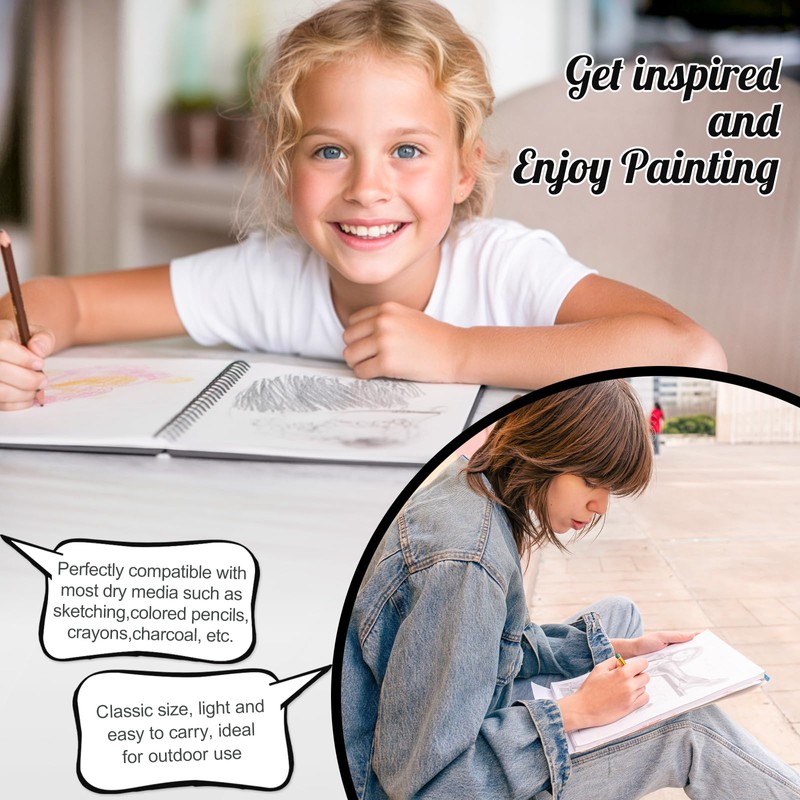 - 【360° Spiral Binding Flexibility】Full-rotation wire-o binding enables flat lay positioning and seamless page removal. Flip sketch pad pages vertically/horizontally without obstruction - adapts to both portrait and landscape artistic compositions