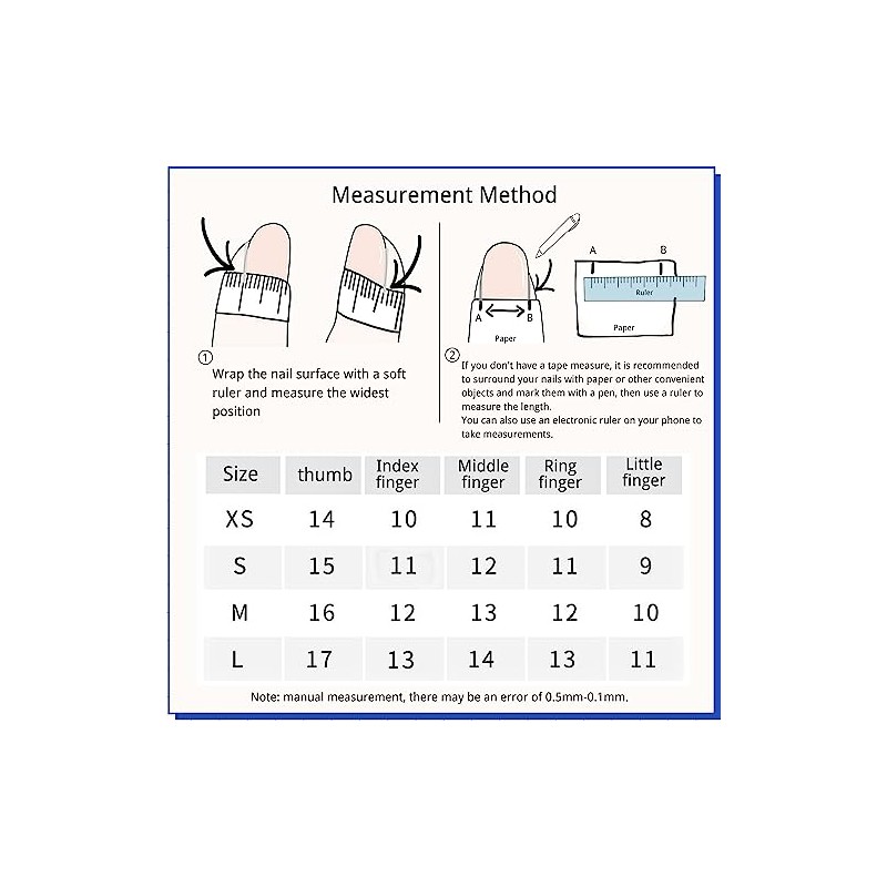 - Advantages&Features: ①Although there are only 10Pcs, each piece is exactly the size of each of your fingers, and you do not need to spend time picking the size. ②The craft is comparable to the nail salon, saving you money and time; A manicure with jelly glue can make your manicure reusable and become a collectible art piece when you're not wearing it anymore.