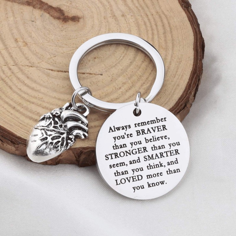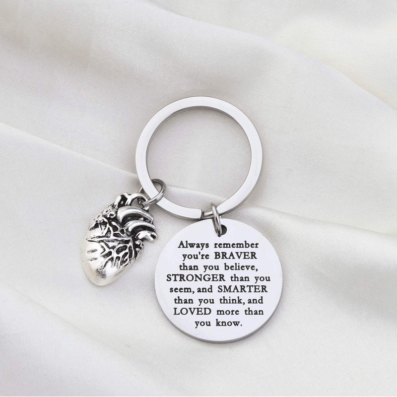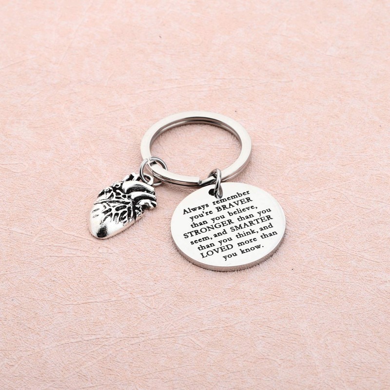 WSNANG Anatomical Heart Keychain Braver Stronger Smarter Than You Think Keychain Anatomy Cardiologist Gift (Anatomical Keychain)
