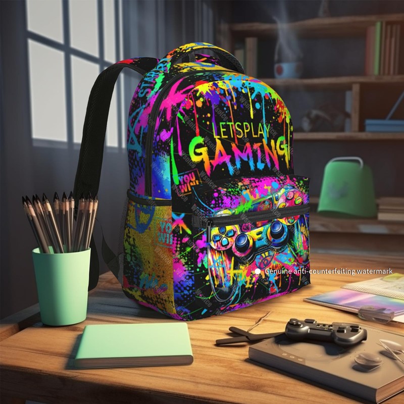 Wsotce Video Game Kids Backpack For Boys Graffiti Game School Backpacks Gaming Travel Bookbag for Age 6-18 Elementary Middle School Back Pack