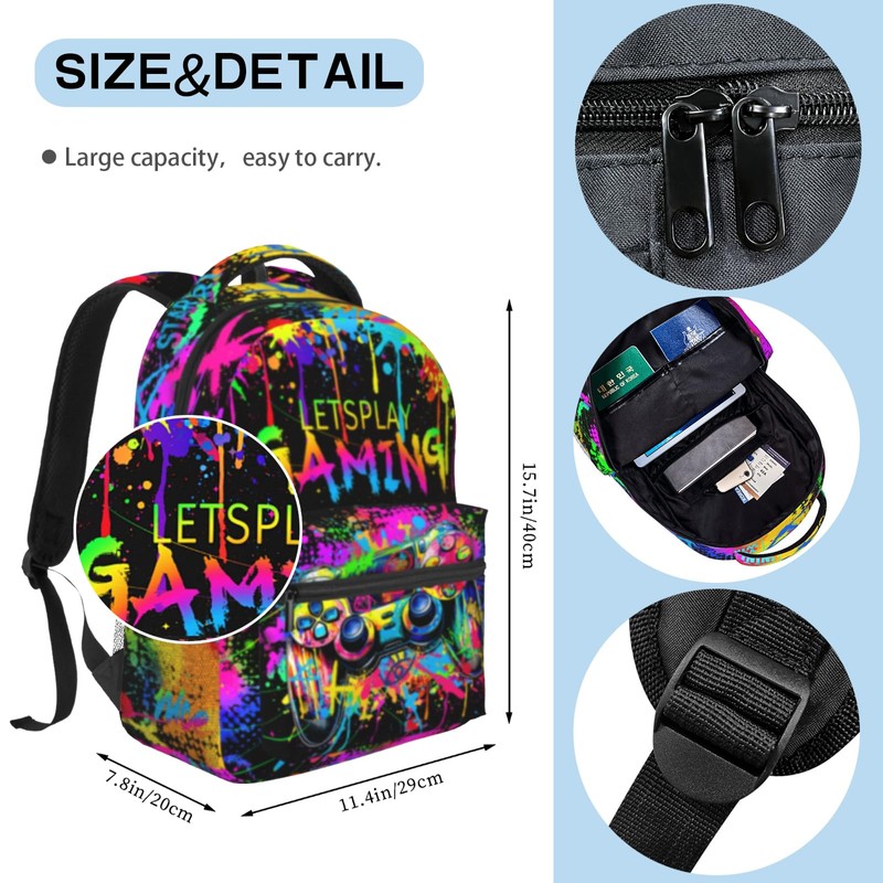 - Comfortable and Ergonomic Design: Our gaming backpack for boys 8-12 are designed with comfort in mind. It features padded shoulder straps and a breathable back panel to provide maximum comfort and support, even during long school days.
