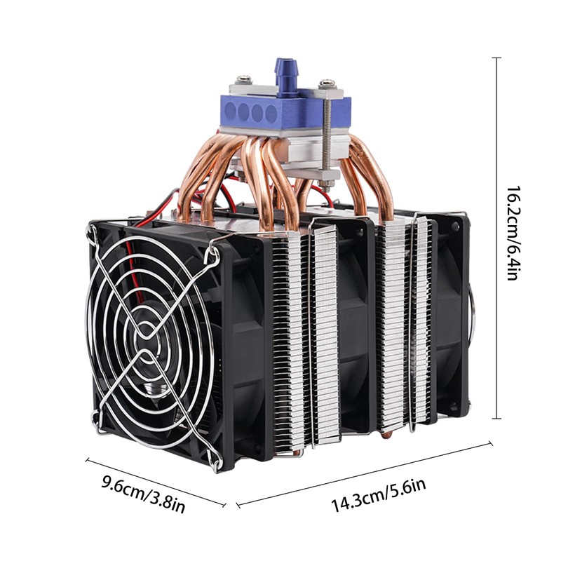 Description This electronic semiconductor cooler is made of high-quality aluminum and copper, featuring high cooling efficiency and quick heat dissipation design.     Its compact size and lightweight allow you to easily carry and store it.     Without refrigerant during cooling, it is an ideal eco-friendly cooling choice for your 2.64-7.93 gal fish tank or other water cooling system. Details Fins Water-cooling Head: Water-cooling head's internal fins design features a large water contact surface, making it cool fully and efficiently. Aluminum Fence: The aluminum fence can speed up the heat dissipation, and at the same time prevent large debris from entering the machine, improving the service life of the machine. Application It is suitable for fish tank cooling, computer water cooling, circulating water cooling, aquariums and other places and fields used for cooling liquids. How to Use 1.     Connect the module to the system where heat dissipation is required, and wire according to the corresponding position. 2.     Connect to the power supply. 3.     The module automatically follows the system for heat dissipation. Specifications Color: Black Material: Aluminum, Copper Assembly Required: No Connect Way: Connect Pump and Power Supply(Both not Included) Number of Fans: 3 Number of Items: 1 Suitable Tube Diameter: 8mm/0.31inch Style: Modern Power: 180W Voltage: 12V Suitable Fish Tank: 10-30L/2.64-7.93Gal Product Size: 14.3*9.6*16.2cm/5.6*3.8*6.4inch Packaging Size: 20*15*20cm/7.87*5.9*7.87inch Gross Weight: 0.5kg/1.1lbs Package Included 1*Electronic Semiconductor Cooler Notes 1.    Please check the size carefully before ordering. 2.    In addition to the refrigeration system of this product, you also need to prepare a power supply(not included).     If you want to pay close attention to the temperature, you can also prepare a thermostat(not included). 3.    If the water has not cooled down for a long time, it indicates that your fish tank is too large and the product cannot meet your needs. 4.    Please do not use excessively long hose to prevent the water temperature from rising.     Please connect the water circulation before connecting the refrigeration unit.     This product cannot be used as an air conditioner. 5.    Please note that water circulation needs some time, when you first use the cooler, the cooling effect will slowly appear.     You can also combine the thermostat to control the cooler, setting the temperature range according to the local ambient temperature. 6.    Please note that the temperature will be different when using different thermometers, and the temperature will be about 50℉ lower when using the miniature temperature sensor than the waterproof sensor. 7.     Please allow the slight color difference caused by the shooting light and 1-3cm error due to manual measurement, and make sure you do not mind before you order.