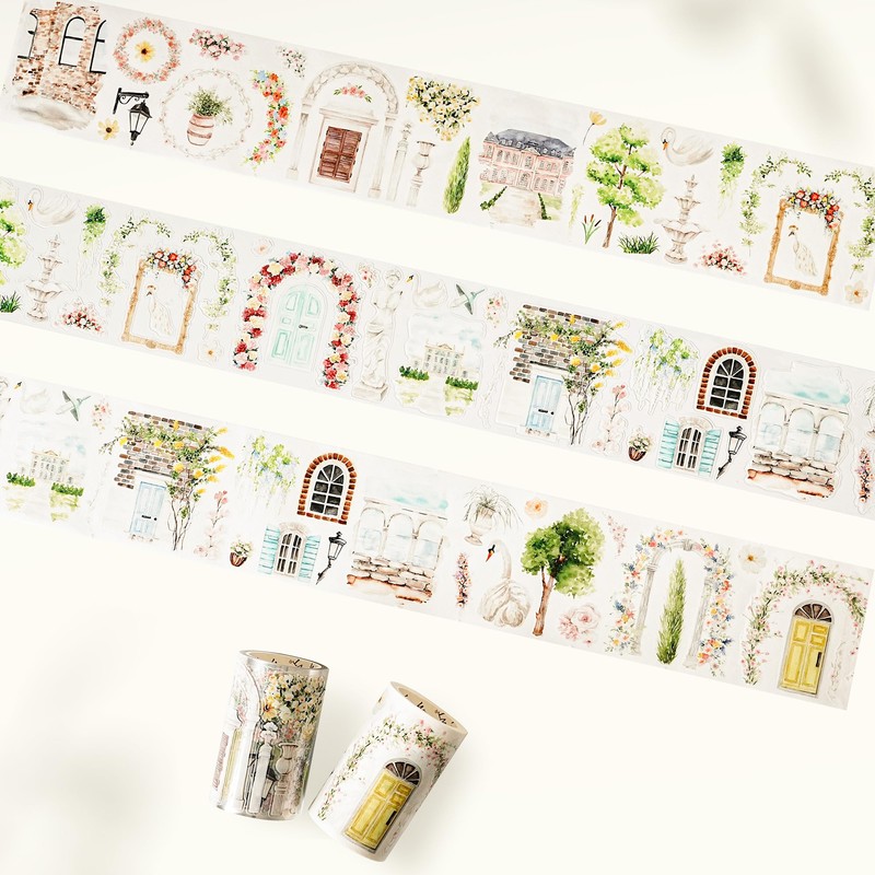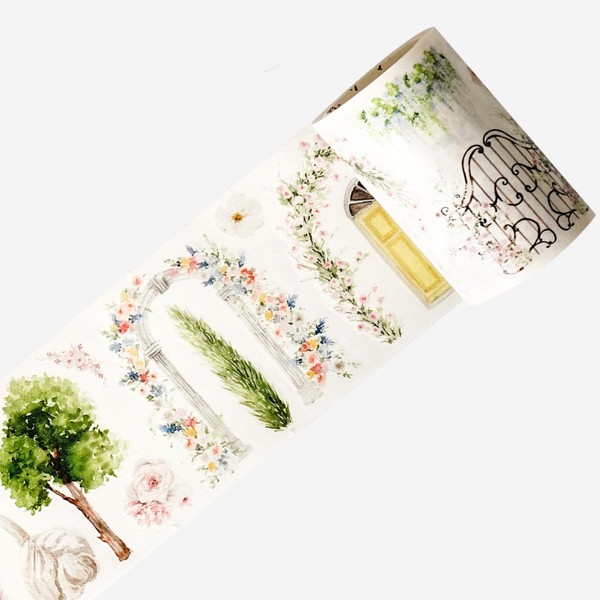 WT Pre-Cut French Courtyard Wide Washi Tape, Single Roll, Romantic European Courtyard Style with Floral Designs, Decorative Washi Paper Tape for Journaling, Scrapbooking, Planner, DIY Crafts