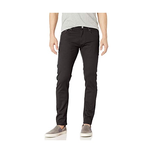 WT02 Men's Basic Color Twill Stretchable Skinny Pants, Black, 38W x 32L