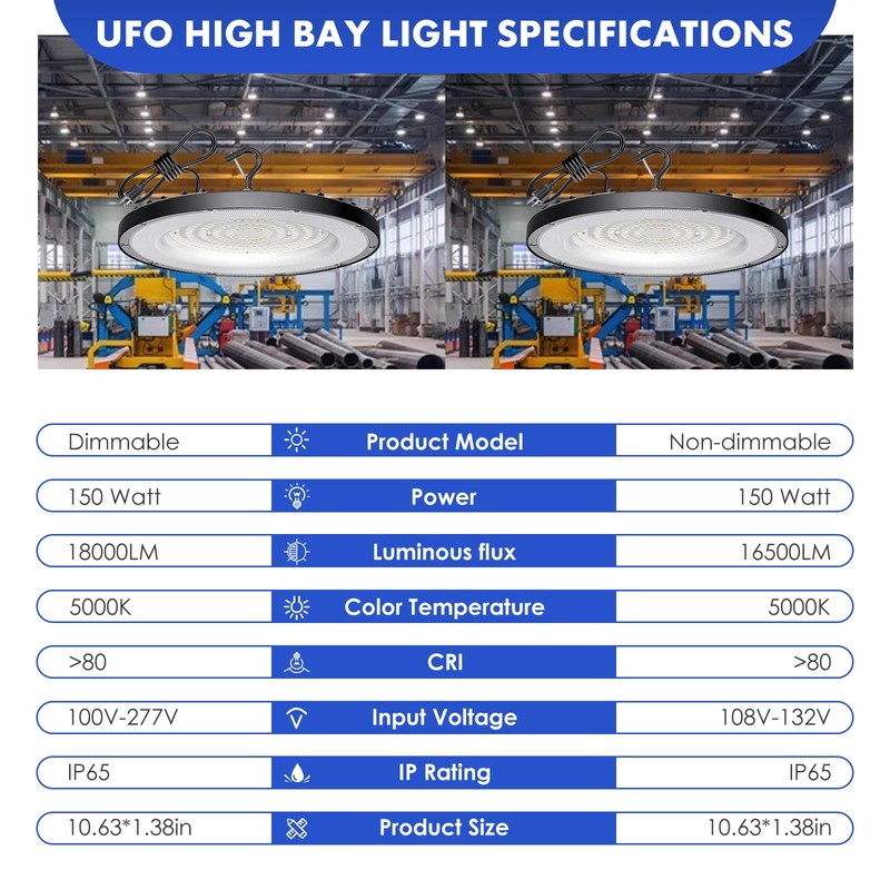 - [Customer Service and 5-year Warranty] This UFO high bay LED shop lights comply with ETL certification, and each light undergoes rigorous testing before leaving the factory and packaging. If there are any issues with the product within 5 years, or if you encounter any problems while using this product, please leave us a message via email and we will provide after-sales service and ongoing technical support.