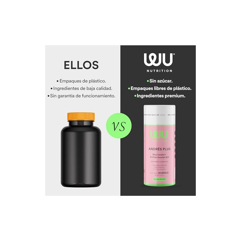 WU - WU Nutrition ANDRÉS PLUS | Myo Inositol + D-Chiro Inositol 40:1 | Balance Femenino Premium | 120 Cápsulas | 2 meses de consumo. ⭐ Calidad premium certificada con excelentes reseñas. Materiales de alta gama y acabados premium. 🎯 Producto más buscado del mes. Ideal para quienes buscan lo mejor en calidad y estilo. Producto auténtico con satisfacción total asegurada. ¡No te quedes sin el tuyo y aprovecha esta oportunidad única!