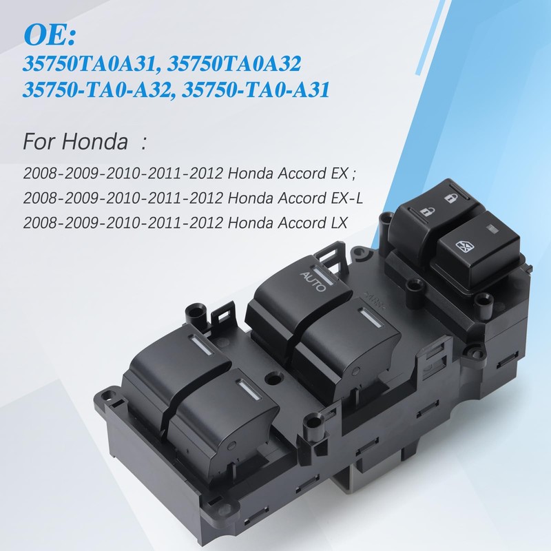 - 【Compatibility】This driver side window switch compatible with 2008 2009 2010 2011 2012 Honda Accord EX-EXL-LX Sedan.