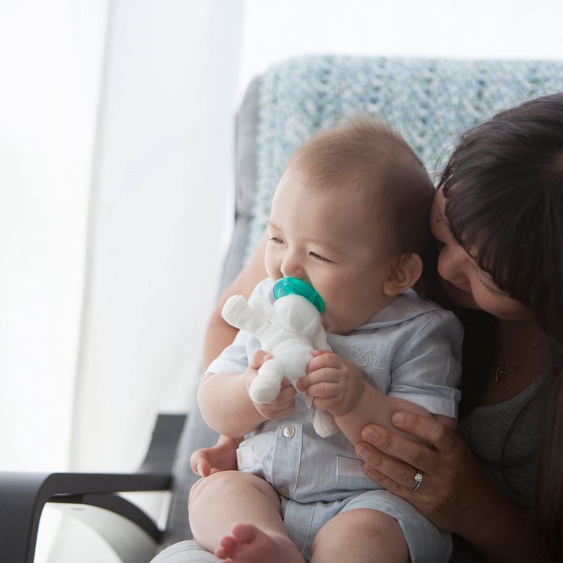 - Durable, one-piece construction prevents germs and helps keep pacifier clean