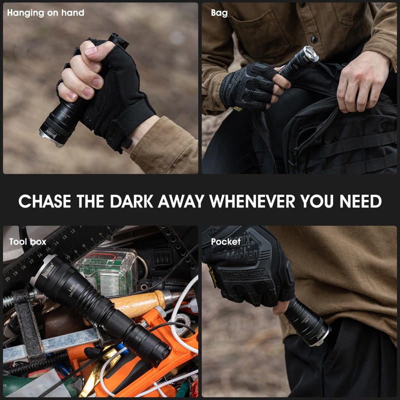 WUBEN L60 Tactical Torch, 1200 Lumens LED Rechargeable USB, Zoomable LED Torches, Extremely Bright, 5 Modes Flashlight, IP68 Waterproof Torch Light for Camping, Emergencies, Outdoor