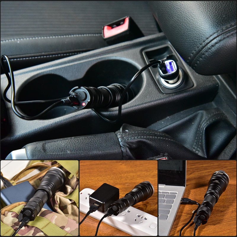 - Torch LED rechargeable and control light: WUBEN LED torch rechargeable has an integrated charging port. It has a circuit with return protection, ensure the reliability and stability of the torch circuit and extend the battery life. If the remaining battery life of the torch USB rechargeable is less than 30 minutes, the light of the LED torch USB rechargeable flashes to remind you and flashes three times every 5 minutes until it goes off. It also shows the charging status. Fully charged is green, the charging process is red.