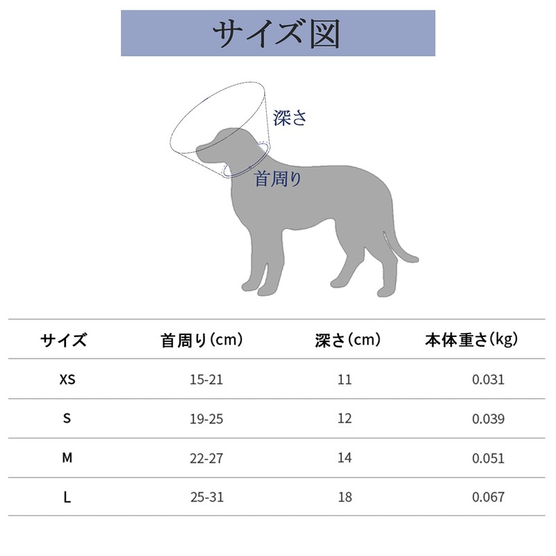 Size: XS: Neck circumference: 5.9 - 8.3 inches (15 - 21 cm), Depth: 4.3 inches (11 cm); S: Neck circumference: 7.5 - 9.8 inches (19 - 25 cm), Depth: 4.7 inches (12 cm); M: Neck circumference: 8.7 - 12.2 inches (22 - 27 cm); Depth: 1 inches (14 inches (14 cm).
