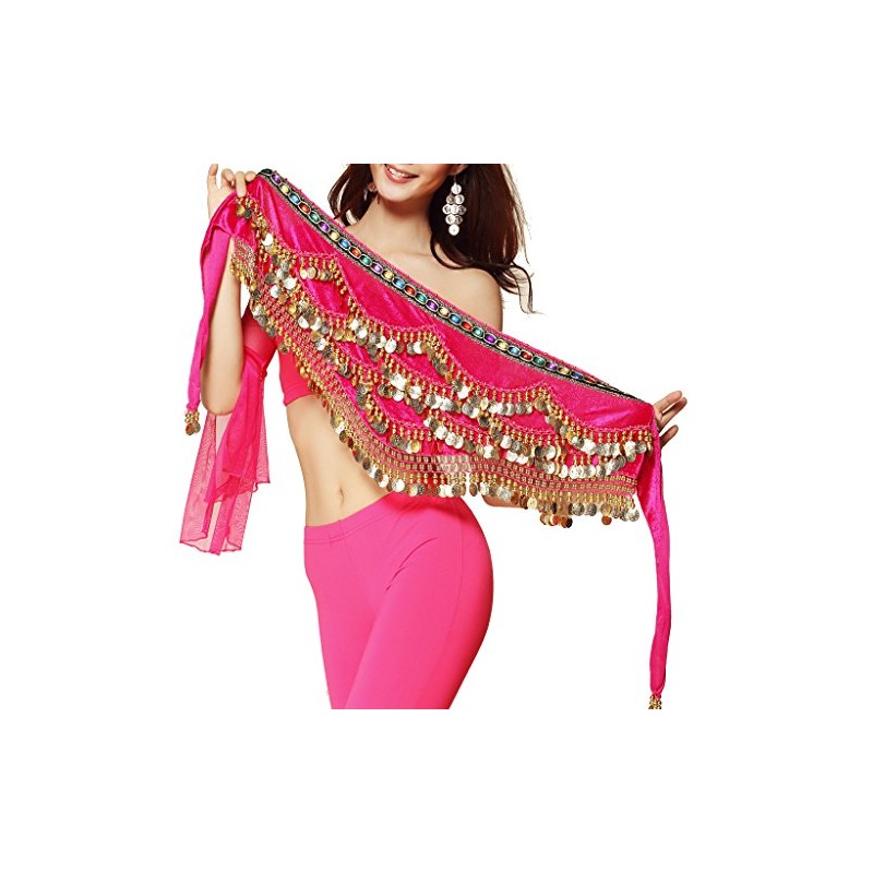 Wuchieal Bufanda de cadera triangular para mujer con monedas doradas, Rosado oscuro, Talla única