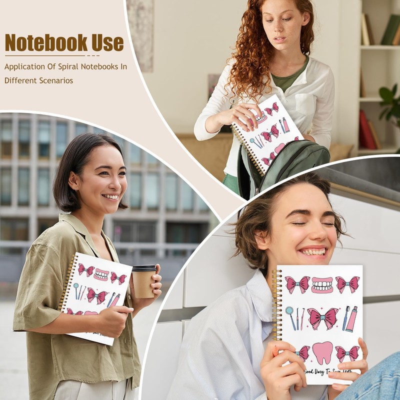 WUCHJ Dentist Gifts Notebook, Dental Hygienist Assistant Gifts Journal, Coquette Pink Bow Dental Spiral Notebook Journal for Note Taking, Dentist Office Supplies, 5.5x8.3 Inch