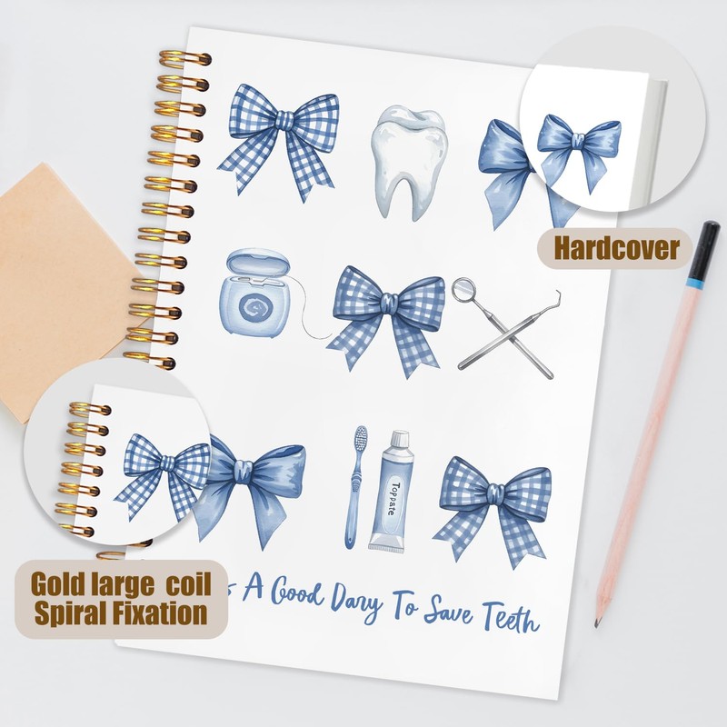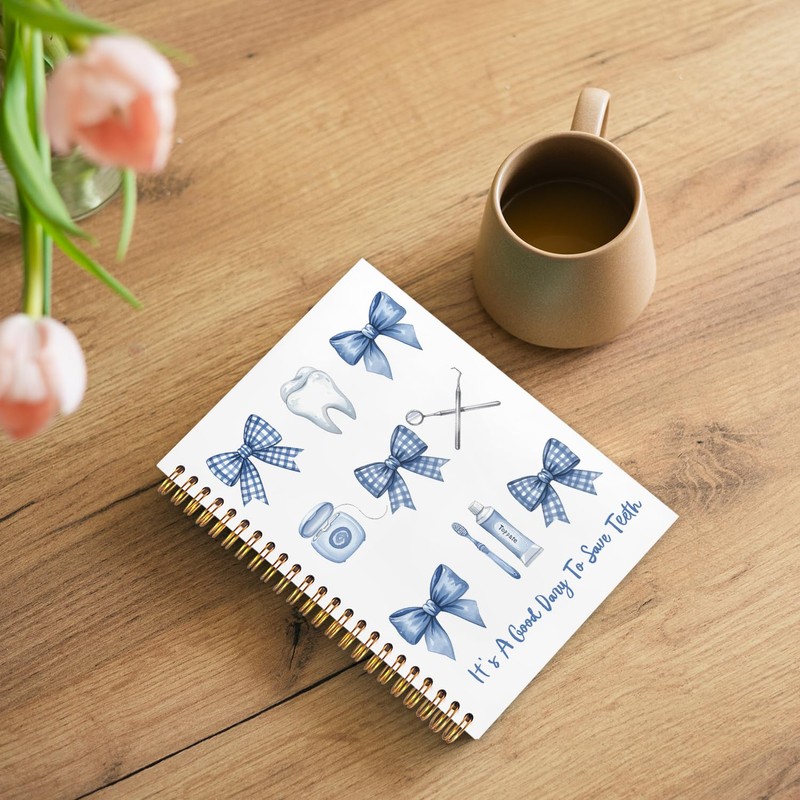 WUCHJ Dentist Gifts Notebook, Dental Hygienist Gifts Journal, Coquette Blue Checkered Bow Dental Spiral Notebook Journal for Note Taking, Dentist Office Supplies, 5.5x8.3 Inch