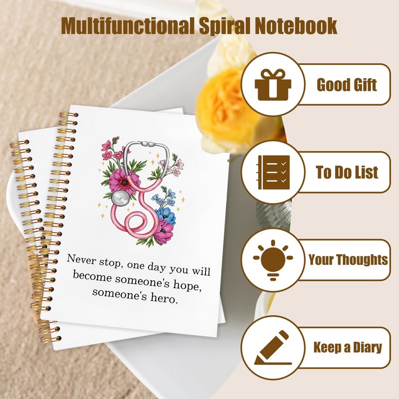 WUCHJ Nurse Notebook, Nursing School Gifts Journal, Future Nurse Doctor Gifts, Floral Stethoscope Spiral Notebook Journal for Note Taking, Nursing Medical Office Supplies, 5.5x8.3 Inch
