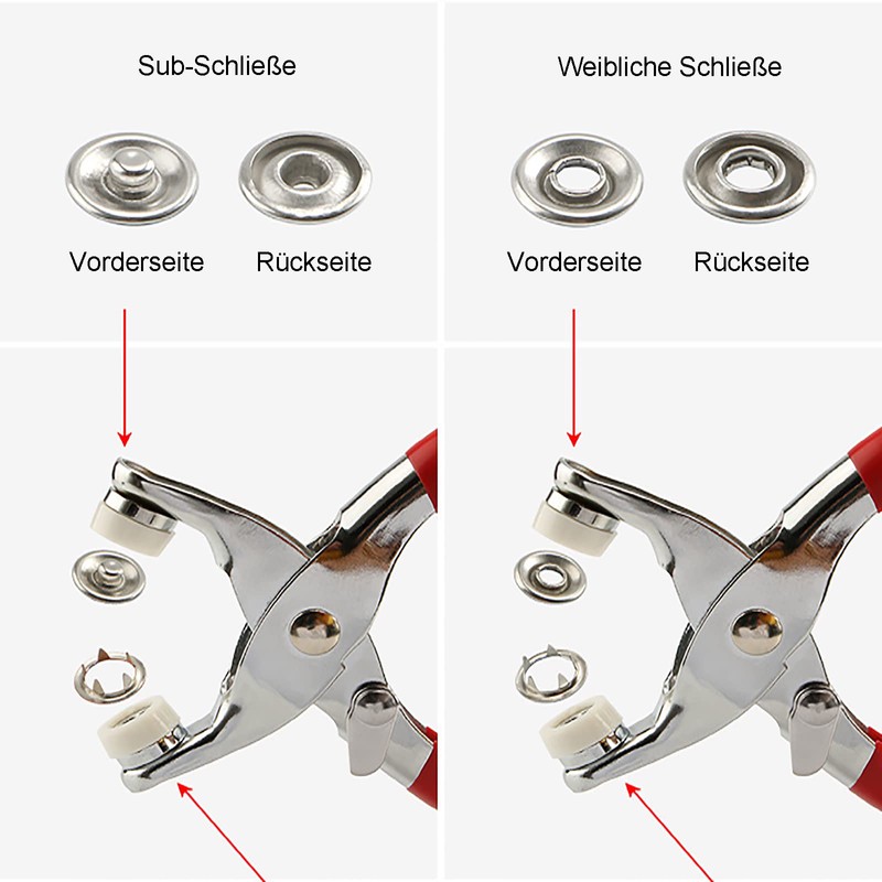- Allows you to quickly attach eyelets, buttons, rivets etc.