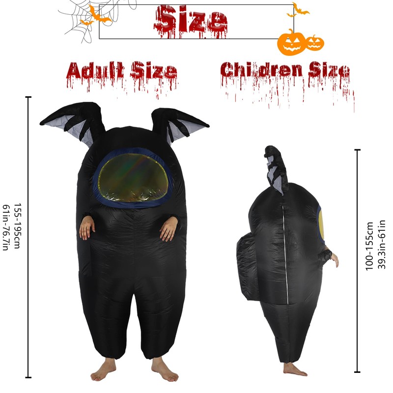 - 【Realistic Shape】Full of details, the transparent mask on the face and the tentacles on the head . The costume is made of high-toughness material, not easy to break, and has a full three-dimensional sense after inflation. It is available in sizes for adults (155-195CM/61.02-76.77 inches) and children (100-155cm/39.37-61.02 inches). The inflatable part requires 4 AA batteries (not included).