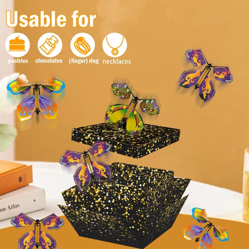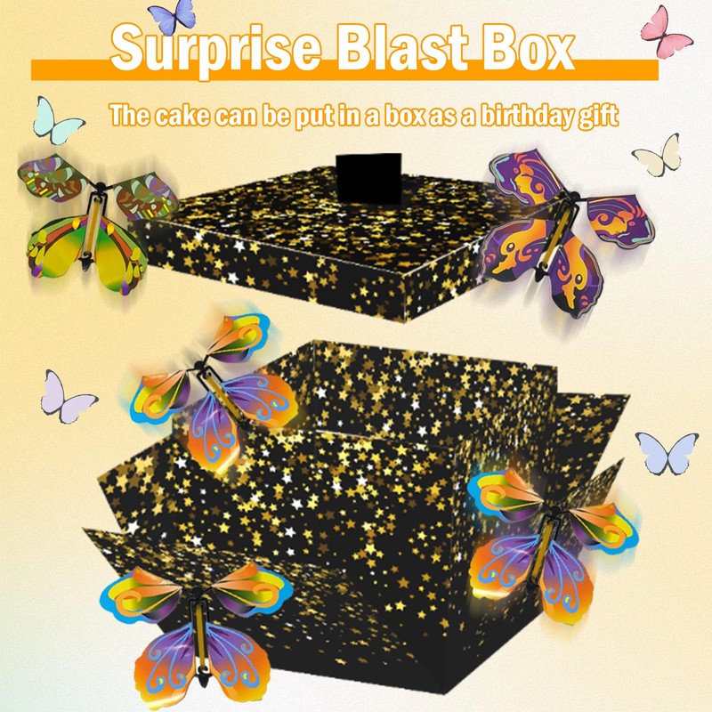 - Eternal Memory: You will receive an exploding gifts surprise box with 6 butterflies. Our flying butterflies for explosion box will give you the wow effect. Once the butterfly surprise box is opened, butterflies fly out and bring the effect of delight and surprise for the recipient.