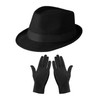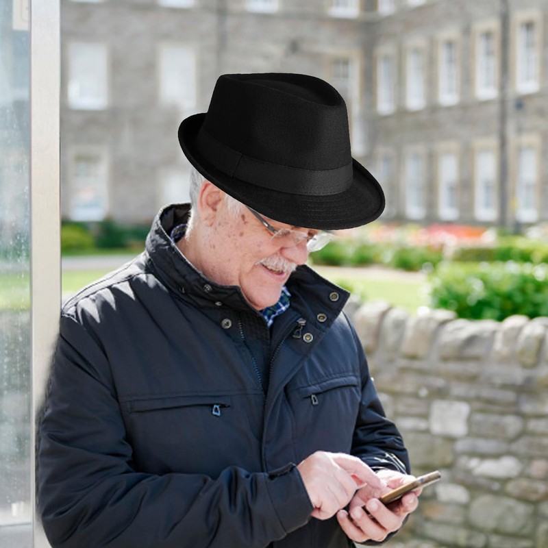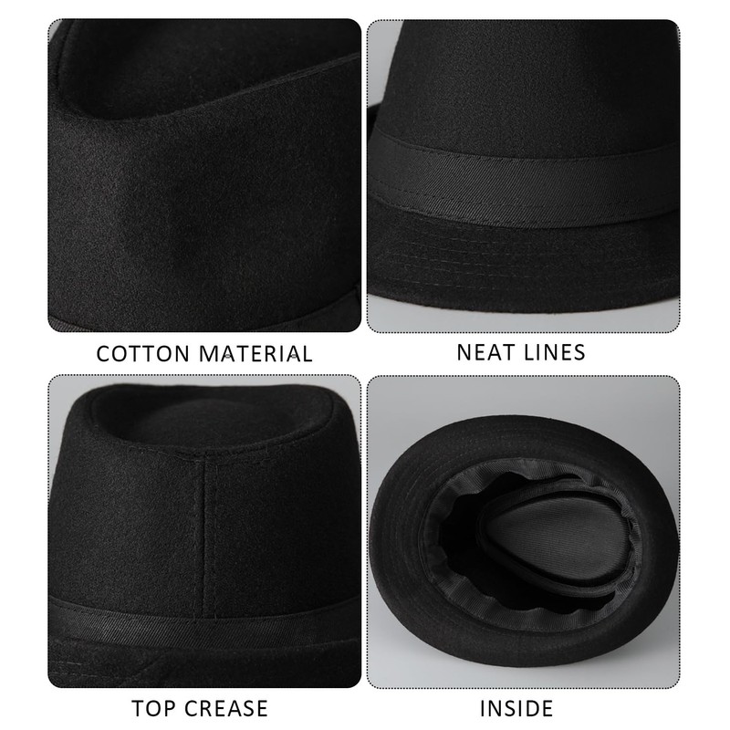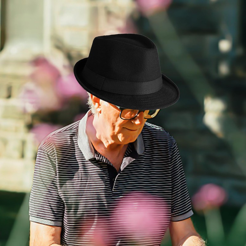 WUFGWBD 1 Men's Hat, 1 Pair of Finger Protectors, Bowler Hat, Men's Jazz Hat, Men's Felt Hat, Short Brim Hat Black