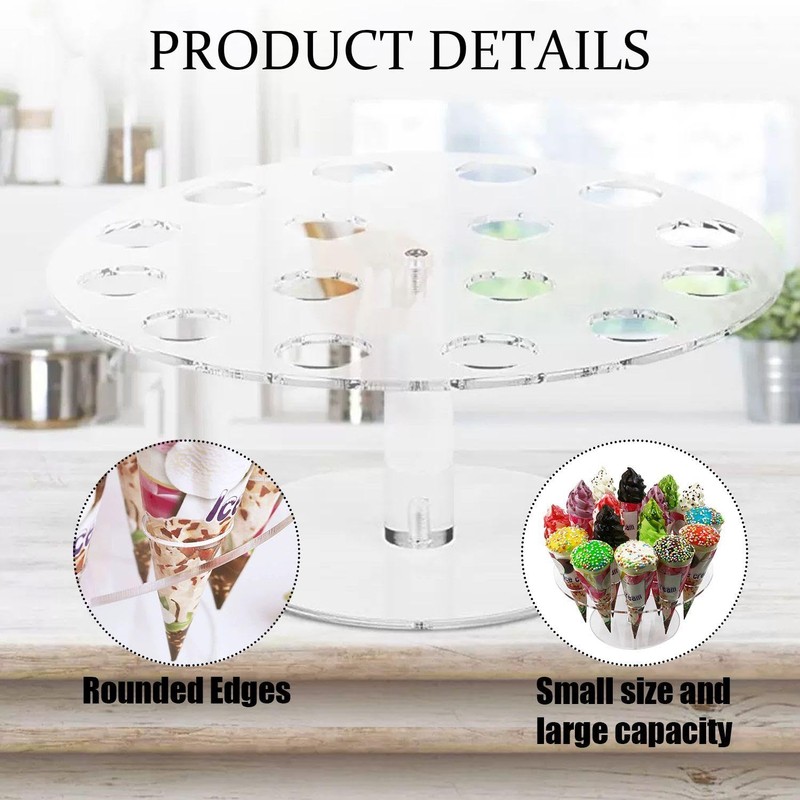 • 【Unique Design】 The Design Of This Product Is Simple And Elegant, And The Transparent Acrylic Material Makes The Display Stand Look Elegant And Fashionable. Each Display Hole Is Moderately Sized And Can Securely Place Ice Cream Cones Or Other Small Foods For Excellent Display Effect.
