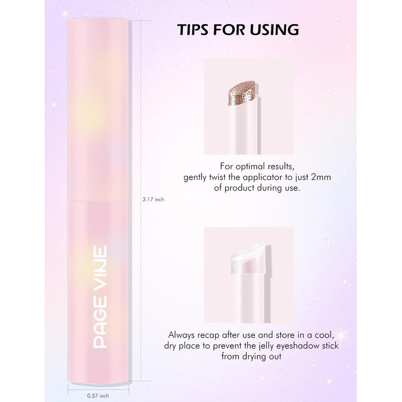- Smooth Lightweight Jelly Finish: Experience a smooth jelly-like finish that glides on effortlessly. The creamy texture melts onto your lids without dragging, making it ideal for sensitive eyelids. The lightweight eyeshadow stick feels barely there, yet provides high-impact glitter makeup with a dazzling shine