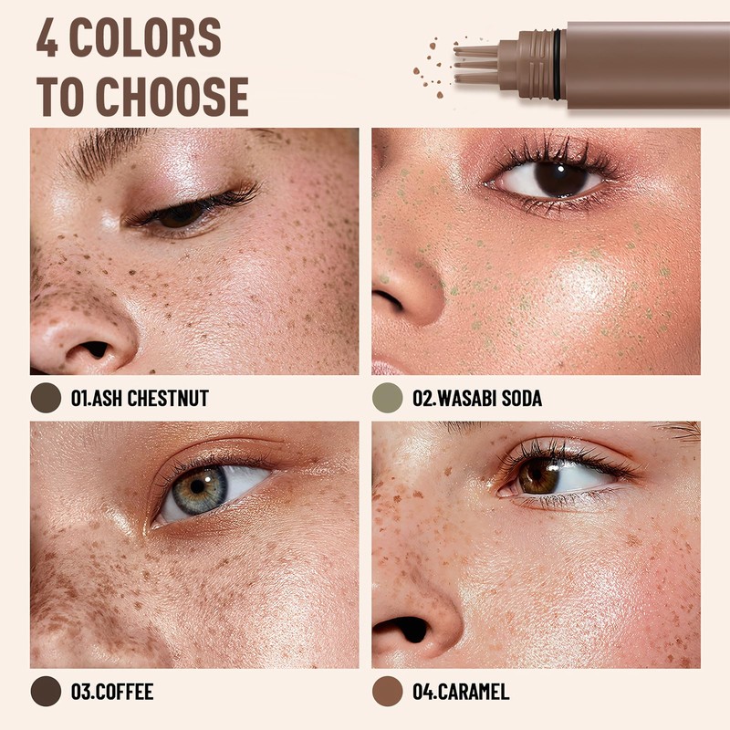 • Waterproof & Long-Lasting Formula: Our fake freckles stain marker offers not just style but also its waterproof & long-lasting formula. Available in 4 shades - ASH CHESTNUT, WASABI SODA, COFFEE & CARAMEL, this freckle pen makeup dries quickly, ensuring a smooth & buildable application every time