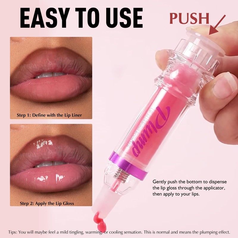 - Easy to Use for: First, define and shape your lips using the brown lip liner. Next, apply the lip plumper gloss by gently pushing the bottom to dispense the product through the applicator. Within moments, you'll feel a mild tingling sensation that the plumping effect is working to your lips. This lip kit with lip liner and gloss is crafted for all skill levels